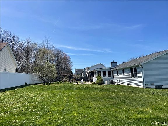 Substantial ranch on a double lot (nearly half an acre!) in the Forest Glen area of Hamburg Village is ideal for entertaining: huge back yard is level, surrounded by privacy fence and offers multiple patios. The covered patio was used even in the winter! Owner will remove the hot tub if you like, or feel free to repair and enjoy. A lovely adjacent neighborhood wooded lot adds natural ambiance. Home offers two ample bedrooms, each with a full bath. A third full bath and first floor laundry makes single level living easy, while the full, partly heated basement offers possibilities for more living space! Enjoy a year round sky-lit sun room! Cozy up to a living room gas fireplace with book cases on each side. A spare room off the mud room could serve many uses. Plenty of storage. Enclosed area in basement offers wine storage or food pantry potential. Garage is over 600sf big with multiple access points, including an overhead door to the back yard, and a workshop area. Just minutes to downtown Buffalo, Hamburg amenities, Woodlawn beach and more! In addition, the home features an emergency generator.