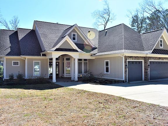 Contractors home built with attention to detail & design - Custom Gem with its expansive views and unique features in a most desirable community. The variety of ceilings will captivate you - from the 13' great room w/8x8 dropped beams to the boxed/tray dining room and master's cathedral w/beams and barrel ceilings. Crown molding & baseboard. Stainless appliances. Enjoy gorgeous hardwood throughout main level; 8' solid core doors. Bathrooms tout gorgeous tile work and fixtures while well-designed kitchen boasts granite counters and custom cabinetry that offers a wealth of storage. Triple heated garage and concrete driveway. Dine out on waterside patio with outdoor kitchen and/or boathouse a dash away over the almost level lot (dbl bths has one area floored but designed to be cut out for 2nd slip).Three zone heating - main level has gas backup. Owners moved in 12/27/2016. No repairs needed
