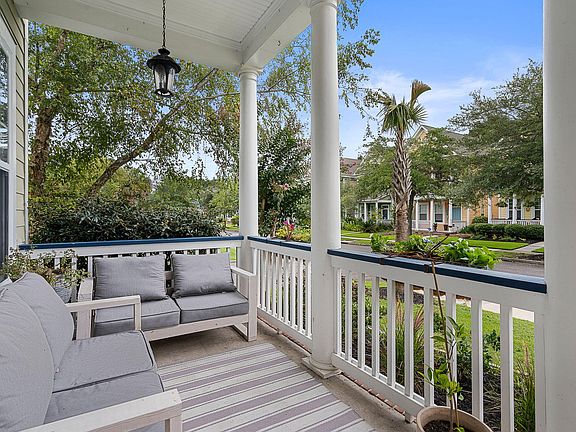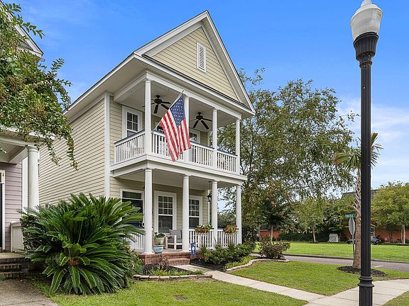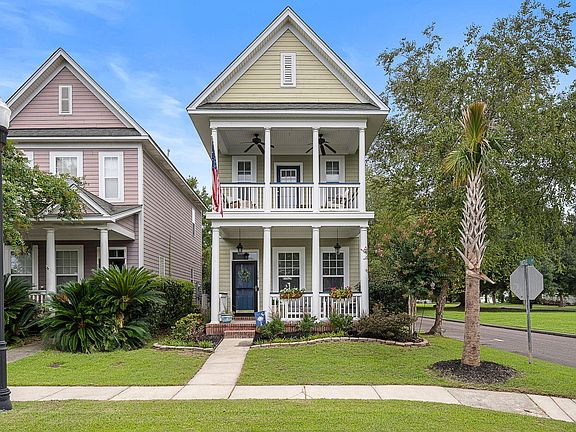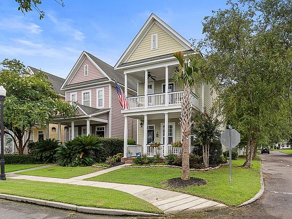 118 Hyacinth exudes quintessential Charleston Charm! Located on a corner lot adjacent to a green space with a majestic live oak, you will absolutely fall in love with this classic home! The front facade is flanked by wide double porches that lead into an open concept living space. The cozy family room features a wall mounted electric fireplace and custom mantlepiece. High ceilings give an elevated airiness as you move into the spacious dining area and the eat in kitchen. Off the back of the home is a patio where you can grow fresh herbs in your kitchen garden. Upstairs the primary bedroom has a romantic private porch perfect for sipping coffee while watching the world wake up! Two generous sized bedrooms and a full bath offer plenty of additional space. Enjoy the vibrant communityof White Gables, which features a pool, walking trails, tennis courts and much more!