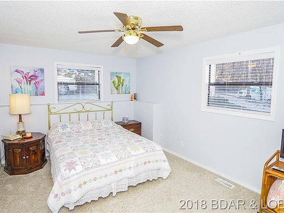Come see this lovely Lake of the Ozarks home with an easy gentle walk to the 40x30 dock with 2 covered wells. The covered deck and patio face East allowing all afternoon shade. Excellent 2 car garage with parking for 4 additional cars. This lakefront home offers 3 bedrooms, 3 full baths, finished lower level with additional sleeping area (allowing total sleeping for 8 easily). The partially fenced area has multiple possibilities. A street light lights up the entrance area, patio area, stand alone concrete pad for standing fire pit and hanging hammock area. Great location in a small cove on the 4MM of the Big Niangua. Very clean home-shows great!