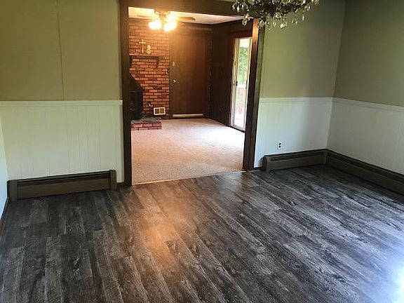 Very nice setting just out of town. 3 bedrooms, 1 full and 2 half baths. New flooring and carpeting. Over the 2 stall garage is a workshop and 2 rooms. Could be storage or could be finished off to additional living space. Family room with bar in basement.