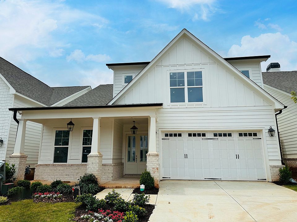 The Laurel plan built by Heatherland Homes. Primary suite on main offering 1 level living with additional flex space on second level. Enter the inviting foyer to open-concept living, 10' ceilings and 8'doors, guest suite located off front entrance. Large kitchen complete with stainless steel KitchenAid appliances, quartz countertops, subway tile back-splash and range hood with walk-in pantry keeping everything close at hand. Gathering room with a gas fireplace offers a comfortable setting for your family gatherings. Light filled dining room large enough to entertain the entire family. Sip your morning coffee under your covered back porch. Upper level features a large flex space/guest suite with a private bath and large closet. Centrally located! Approx. 5 miles to Historic Roswell or Woodstock & 8 miles to Alpharetta/Avalon. Enjoy that small hometown feeling. Low Cherokee County Taxes, Award winning schools! Quick Move-In! *Secondary photos are stock photos*