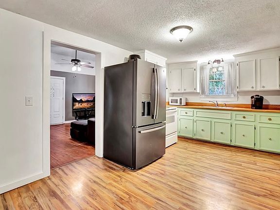 Charming 2 bed, 1 bath home (1,077 sq. ft.) with a newly updated kitchen featuring a dishwasher and disposal (see 2nd kitchen photo). Enjoy high ceilings in the living room, a covered porch with swing, and a cozy fire pit area. The property is tucked in the back corner of a quiet looped street, surrounded by woods with deer, birds, and bunnies visiting daily. Friendly, quiet neighbors make this spot even more inviting.