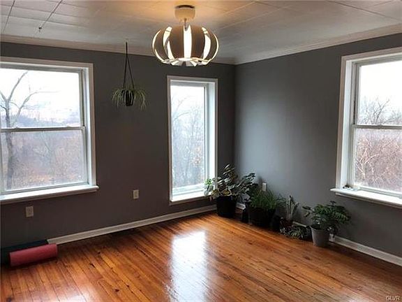 Unique detached home with great views overlooking downtown Easton! Perched on the hill, this home has been substantially improved and yet, the large kitchen area is a prime opportunity for you to design your dream kitchen! The floorplan is eclectic - enter the home through the side door on the lower level which features the living room with fabulous views, the huge dining room for entertaining, and the kitchen which awaits your design skill! Upstairs you will find the main bedroom, a middle room which can be on den office, family room, or a bedroom? Off this room is the full bathroom. Toward the front of the home is a second bedroom with passage to the enclosed porch and front door to the street. Although the current furnace is oil, there is gas service to the house that powers the dryer. Large attic might be an expansion opportunity. Large two story shed for storage. Fenced yard with deck and views. Great location! Priced to sell.
