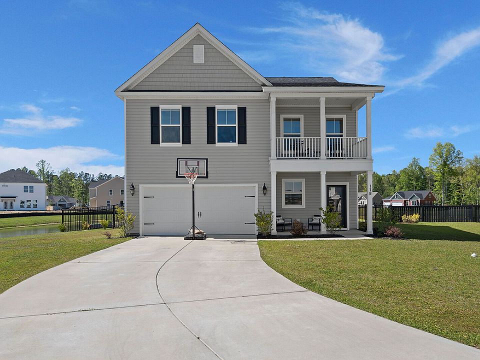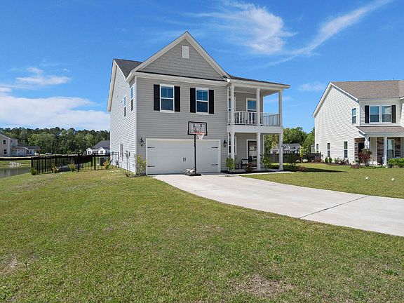 Rent Ready in Ridgeville! Pride of ownership shows in this 4 bedroom 2.5 bath cul-de-sac stunner! As you enter the home you are greeted by tall ceilings, gorgeous LVP flooring, and charming custom finishes throughout that include a dropzone, shiplap, black iron hardware, and modern farmhouse lighting. The open floor plan is perfect for entertaining and spending time with family. The kitchen is truly the heart of the home featuring white cabinets, granite countertops. a gas stove, and a center island with a sink and plenty of room for seating. The spacious owners suite boasts a tray ceiling, porch access, and a spa-like ensuite bath with a large step in shower, a dual vanity, and a water closet. There are 3 additional guest rooms, all generous in size, a full hall bath, and an open second floor loft that would make a perfect second living space, play area, or home office. The home is situated on a premium pond lot with a fenced backyard, an oversized back patio, stacked front porches, and an attached 2 car garage. Timothy Lakes is a great community with easy access to major roadways, Historic Downtown Summerville, and only minutes from the Ridgeville Industrial Campus and Volvo! This home won't last long. Come see it today!