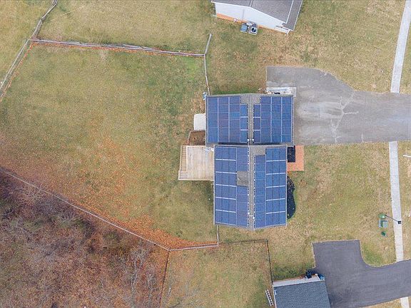 One of the largest lots in Whispering Hills with .39 acre and farm and mountain views for miles! This rare neighborhood home has roughly 3,600 finished square feet with brand new carpet and fresh paint throughout! 5 true bedrooms upstairs plus an upper level laundry room with shelving and ample storage to include a double door linen closet and walk-in closet in the hallway! The primary bedroom includes another walk-in closet and en-suite bathroom, complete with a shower/soaking tub combo with jets, double sinks and updated lighting. The main level includes a large kitchen with stainless steel appliances, built-in pantry with pull-out shelves, breakfast area with new slider door to the deck, formal living and dining rooms and oversized family room with pellet stove. The lower level offers a full in-law/au pair suite with living room, den, bedroom, full bathroom, second kitchen, separate laundry and its own private entrance! In addition, a large storage room with shelving and a double door exit to the backyard offers so many possibilities. The 2 car garage comes complete with a storage platform and convenient pedestrian door. Hardwood floors, original wood trim, dual zoned heat and A/C, central vacuum, tilt-in windows for easy cleaning, 14X16 deck with steps to the fully fenced backyard and lovely brick walkway. Washer/Dryer 2019, dishwasher, microwave, water heater and fence 2022, slider door 2024. Subject to solar panel lease.