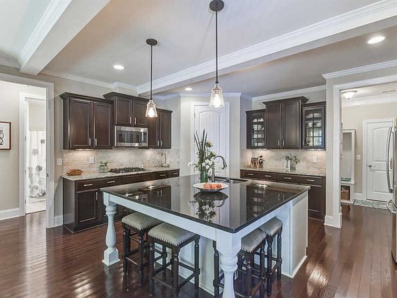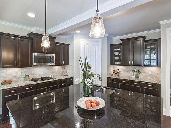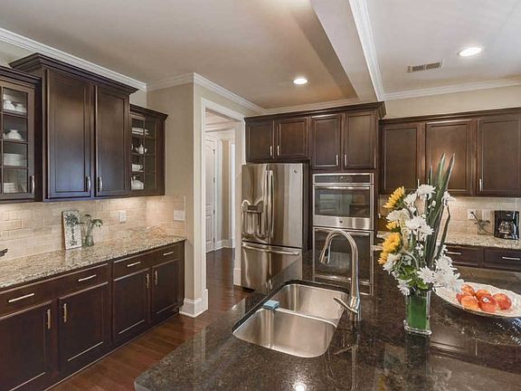 - RoomKitchenFeatures: Granite Counters, Kitchen Island, Pantry, Recessed Lighting, Eat-in Kitchen, Floors-Hardwood, Cabinets-Glazed, Backsplash-Granite