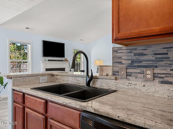 Welcome to living in the beautiful Slocum Woods Subdivision! This 3-bedroom, 2 full bath home offers a spacious open floor plan! The Kitchen overlooks the Eat-In Breakfast Area and Living Room. This home is an ideal space for Entertaining! New custom blinds have been installed in the Open Living Space. Off the Breakfast area you will enjoy the Patio/Sunroom for additional space. Back yard is flat with a privacy fence that surrounds the large lot. The 2-car garage has plenty of space! No HOA! Easy access to Cherry Point Base, Crystal Coast Beaches and New Bern amenities! Washer & dryer does not convey. Refrigerator is negotiable.