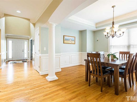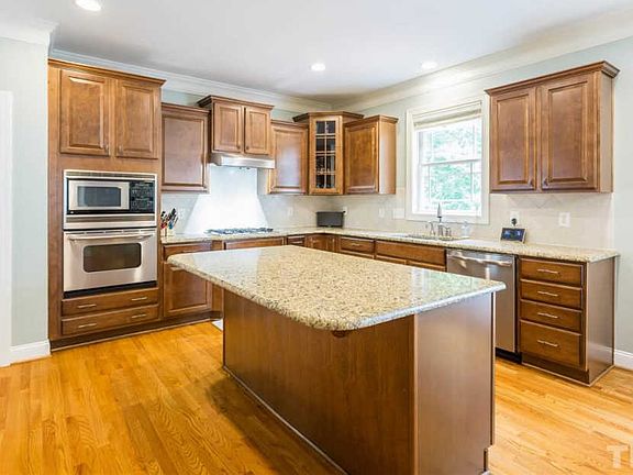 5,400 sq ft. Gorgeous 5bd/4.5bth home in CARY on low maintenance lot. 1st Floor Master. HARDWOOD Floors, gourmet kitchen w/island, GRANITE countertops, SS appls in both kitchens, custom cabinets. Great rm w/10' ceilings & cozy Fireplace. Large 17'x23 BONUS Rm for family. New roof; water heater < 2 years old, 2 decks for outdoor living, finished BASEMENT that includes kitchen, bathroom, game room, hobby room, theater room and workshop. Walk to North Cary Park!