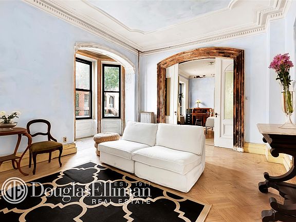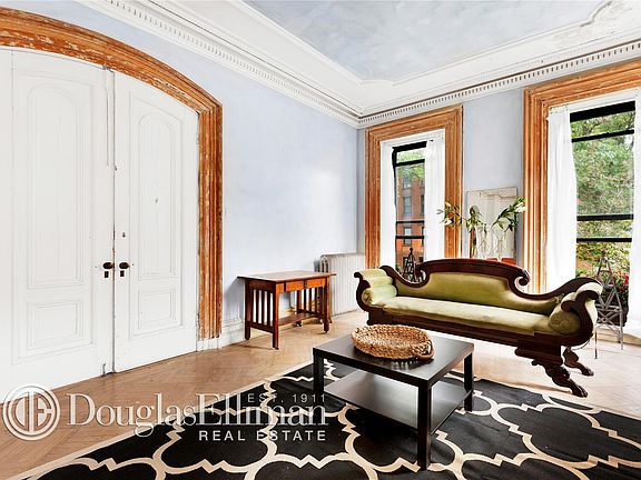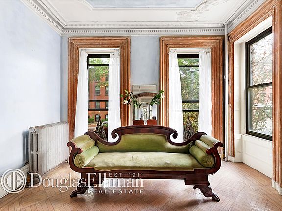 118 is a rarity. It is a gorgeous Italianate mansion, notable for its extra wide proportions of 23 feet, dominating the corner of Lafayette Ave at Cumberland Street. Built in 1860, the classic details include a superbly carved stone entry way, eyebrow lintels, window table sills, as well as two paneled arched front doors which exemplify the period. There is a nod to The French Second Empire on the 5th floor with a slate mansard roof, dormer windows, and an exquisite wood bracketed cornice. Original details? There are tons, the ceilings soar on the parlor level,with ornate wedding cake plaster detail, a pier mirror, several ornate marble mantels, an arched raised-panel & etched glass pocket doors, parquet flooring, and original bannister. There are working fireplaces on all of the floors. An expanse of windows on 3 sides allows light to flood the house, including 2 full height bay windows, one facing south over the 55 foot garden that is bordered by an original brick wall with ironwork running along Cumberland Street. The legal 3 family home is separated into an owners' garden/parlor duplex, a 1.5 bedroom floor-through occupies the 3rd floor and a huge upper 2 bedroom duplex encompassing the 4th and 5th floors. One could create a huge single family or maintain the present setup: live downstairs and have high income producing upstairs rentals.118 is in the Fort Greene Historic District, a neighborhood with tree-lined streets, Fort Greene Park, The Brooklyn Flea, fabulous restaurants and shops as well as excellent public transportation.