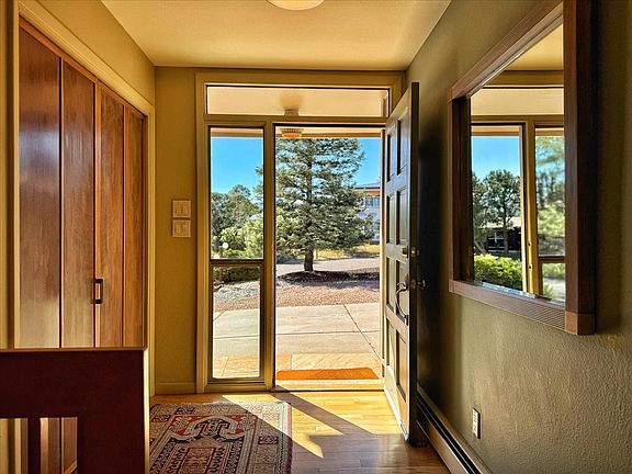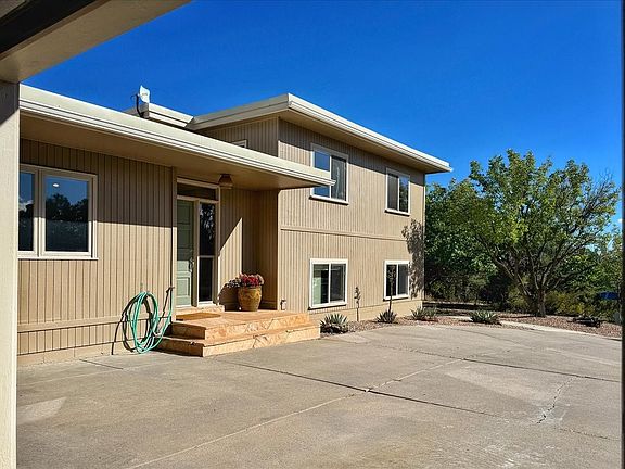 BACK ON THE MARKET! Mid-century modern meets classic contemporary in this spacious, light-filled, move-in-ready home. The open plan living dining area features hickory hardwood floors, a wood burning fireplace insert, and views onto both a sweeping county greenspace and a verdant back yard. Adjoining this formal area is a kitchen great room, with three pantry closets, a built-in desk area, and plenty of room for gathering while gazing out through the large picture windows to the lush garden space. The well-appointed kitchen features GE and Bosch stainless steel appliances, granite countertops, and walnut cabinets. Tucked around the corner is a bonus room, perfect for a home office, and made private by glass paned French doors. This floor also holds a powder room, convenient for guests. Upstairs, discover two bedrooms and a full bath as well as a large primary bedroom with its own ensuite bathroom. The green canopy of treetops offers privacy for the primary suite. The two secondary bedrooms boast views of Pajarito ski hill and Caballo Peak. The lower level offers a variety of possibilities: a large recreational area, an independent guest suite or a studio apartment, complete with a separate entrance and an additional bedroom and bathroom. The oversized, finished 2-car garage allows extra space for sports equipment and a well-lit work area. Outside, enjoy the expansive lot, complete with drip and sprinkler systems for easy maintenance and a large, well-maintained shed perfect for hobbies, playhouse, storage, and more. Two apple trees, a peach tree and a nectarine tree create an intimate orchard oasis. Offering a lovely sense of privacy and the perfect perch for birding and wildlife viewing, the property also boasts proximity to public transportation. This home perfectly combines practicality with understated elegance. Don’t miss the opportunity to own this charming property!