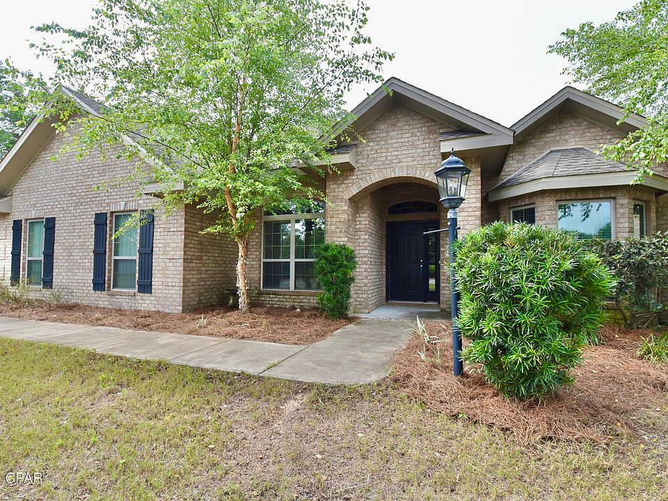 Welcome to the desirable gated community of Lake Merial. With over 2600 sqft, this 4 BR 3 BA all brick home on a 1/2 acre + lot is ready for your family. The foyer leads into the spacious living room, highlighted by a tray ceiling with crown molding, which also extends to the connected screened back patio and backyard. The kitchen has an abundance of custom cabinets, stainless steel appliances, granite countertops, custom back splash, recessed lighting, and ceramic tile. This kitchen has it all! It has a large breakfast nook, kitchen island, as well as a wraparound bar. The formal dining room at the front of the home features crown molding and a bay window. The master bedroom is located on the back of the home, featuring a tray ceiling and crown molding. The master bathroom includes a garden tub, shower, double vanities, and a separate water closet. There is one walk in closet in the master bedroom and a second one leading in from the master bathroom. The open concept of this home with a generous sized entertainment space extends to the kitchen and living room area. Enjoy the privacy of a split floor plan between the owner's suite and the additional bedrooms/office. Flooring throughout the home includes manufactured hardwood in the common areas and office, tile in baths and kitchen, and carpet in the bedrooms. Home has an attached two car garage with attic storage above. This home has an oversized driveway, large enough to fit 6-8 vehicles. Relax, grill, or watch the kids or your pets play in your large backyard from your screened-in covered porch. This home comes with irrigation and hurricane window fabric. Are you ready to take an evening stroll through this inviting neighborhood and enjoy the gorgeous views of the lake.. then call for your showing appointment.