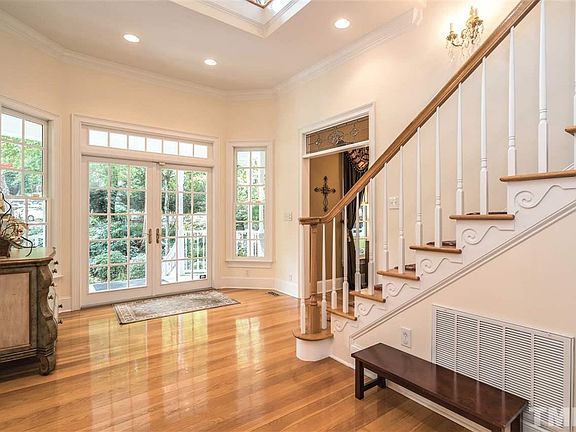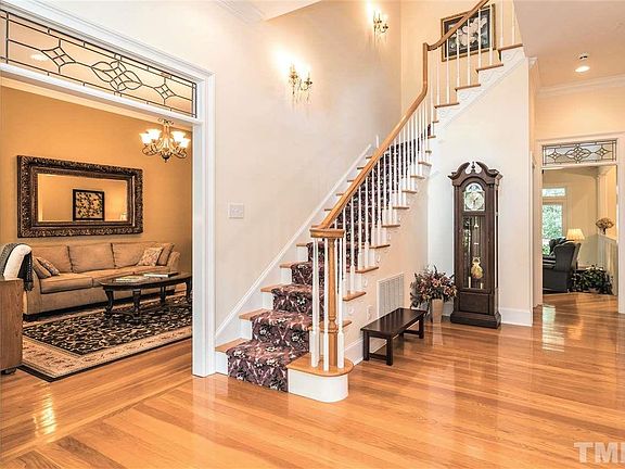 Truly a one-of-a kind home in picturesque SE Cary. Gorgeous custom cabinetry, leaded glass transoms, high-end chandeliers, huge walk in pantry & laundry room, site-finished hardwoods, full front porch with swing, & 2 double garages. New 2018 exterior paint & HVAC and 30-yr. roof in 2017. Additional large daylight living area with walkout deck, kitchenette, bed & full bath, workout room & separate garage. Perfect in-law suite with inside & outside entrances. Quiet neighborhood near shopping, parks, & more.