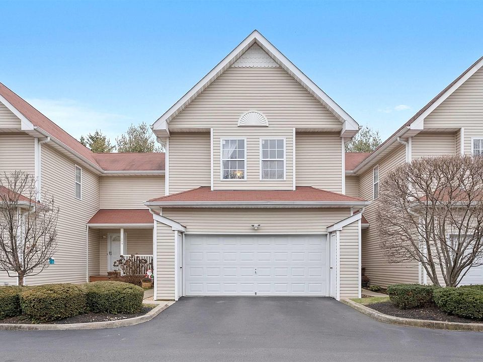 This Beautiful, Spacious Townhouse in a gated community boasts high vaulted ceilings in the living room, gas fireplace, Full dining room, with sliders out to the back yard. EIK, New CAC unit, Master Bedroom with full bath, walk in closet, 2 other large Bedrooms. FULL basement with 8 foot ceilings. 2 car attached garage. Community pool. Conveniently located.