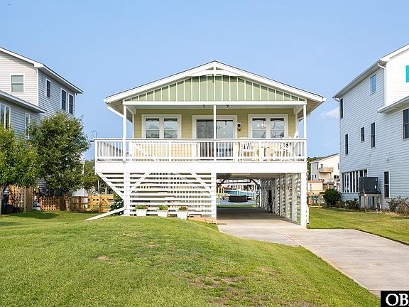 Welcome to your happy place! This cheerful 3-bedroom, 2-bath canal-front home is tucked away on a quiet street in Colington Harbour and has been lovingly cared for by its owner. Bright, breezy, and full of charm, it’s the perfect spot to kick back and enjoy coastal living. Start your day with sunrise views from the back sundeck, then unwind in the evening on the shaded front porch facing the sound. Whether you're chasing the sun or escaping the heat, there’s a perfect spot for every time of day. Out back, a private boat dock and lounging deck give you easy water access for kayaking, standup paddle boarding, fishing, or just dipping your toes in the broad canal. Also offered is covered parking for 2 cars, plus a lockable double-door storage shed for all your beach and boating essentials. With two separate staircases for entry, getting in and out is a breeze—whether you're headed to the beach or just out for a boat ride. Inside, the home's layout features a quaint kitchen with a dedicated laundry space. The kitchen opens into the dining and living rooms, creating a cozy, welcoming space for everyday living and entertaining. Down the hall you will find a pantry, two bedrooms and a shared, full bathroom. The third bedroom, which includes the second full bathroom, is currently used as a fun rec room, offering extra space to play, pursue hobbies, or relax. Whether you're looking for a weekend escape, a full-time retreat, or a place to make summer memories, this sunny spot in Colington Harbour feels just like home.