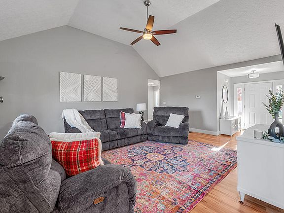Opportunity knocks with this 3 Bedroom, 3 Full Baths brick ranch home with a finished walkout basement in Berea's Beaumont subdivision, conveniently located near I-75. Enter your new home into an open vaulted great room with a formal dining room overlooking the fenced backyard. Enjoy the kitchen equipped with stainless steel appliances, granite countertops, an island, and a breakfast nook with extra cabinetry for plenty of storage. Step onto the covered patio off the kitchen for outdoor enjoyment in the large private yard. The primary bedroom includes a trey ceiling, walk-in tiled shower and a spacious walk-in closet. The finished walk-out basement boasts an oversized family room, plumbed for a future kitchen or wet bar, two bonus rooms perfect for a home office, home gym or additional bedrooms. The patio doors lead to an expansive concrete patio with a fire pit, basketball net, and playlet. The auxiliary garage in basement provides additional storage to the two car garage on main level. HVAC replaced 2023. Water Heater 2021. Enjoy modern comfort and practical design in this inviting home. Close to Berea College, shopping and dining.