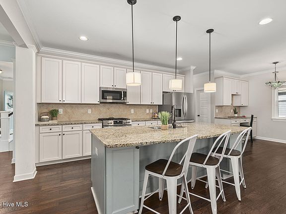 Located in the sought-after Marsh Harbour community, this spacious and beautifully designed home offers modern comforts, stylish finishes, and an unbeatable location just minutes from Emerald Isle's stunning beaches. Just inside, you will discover an inviting kitchen featuring elegant white cabinetry, granite countertops, stainless steel appliances, a large pantry, coffee bar, breakfast nook, and an oversized island with additional seating—perfect for casual meals or entertaining. The kitchen seamlessly flows into a cozy den, where a gas fireplace with a stone surround and built-ins creates a warm and welcoming atmosphere. Or, if you prefer to relax outdoors, make your way onto the screened porch overlooking the fenced backyard, ideal for enjoying a morning coffee or evening breeze. Entertaining is made easy with a patio and expansive concrete space - which offer plenty of room for outdoor dining, grilling, or even a game of basketball. In addition to the breakfast nook, a formal dining room with classic wainscoting adds a touch of sophistication, while durable LVP flooring extends throughout the first floor. A convenient half bath is also available for guests. Upstairs, the primary suite provides a peaceful retreat with a spacious ensuite bath featuring double vanities, a soaking tub, a tiled shower, and a walk-in closet. Three additional guest bedrooms and two full baths offer plenty of space. A large bonus room completes the second floor, perfect for a playroom, home office, media room, or home gym. Marsh Harbour residents enjoy access to a community pool and optional boat storage, for an additional fee. Conveniently located near parks, restaurants, shopping, and the beautiful Crystal Coast, this home effortlessly blends comfort, style, and convenience. Don't miss the chance to make this stunning home yours—schedule your showing today!