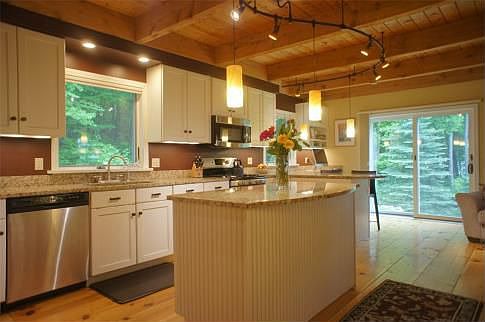 This home will wow you from top to bottom. Contemporary post and beam styling and wide pine floors place this 2864 sq ft three bedroom home apart. Adirondack sunset views, 2.66 acres with original stone walls, beautiful woods and rolling fields. The front rocking porch welcomes you to the open first floor great room. Beam and board ceiling in the living room with modern style tech lighting. The open family room and dining area flow off a large kitchen with custom cabinetry and wonderful built-ins. The master bedroom suite was added in 2009. This enjoyable suite includes fireplace sitting area, a fantastic master bath with walk-in shower and soaking tub. Children and guest bedrooms complete our home with a Maine cottage style guest bath.