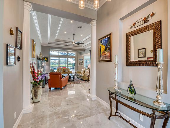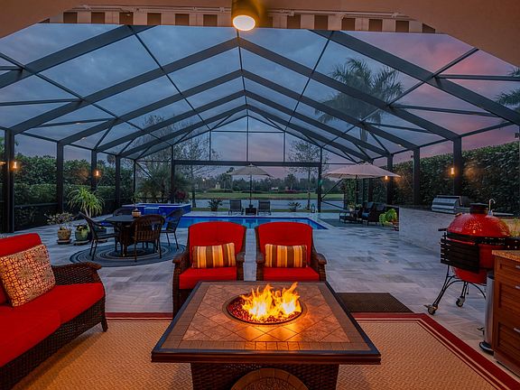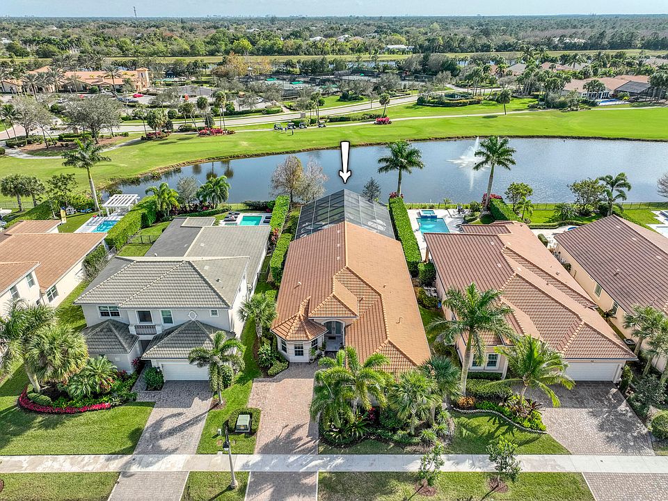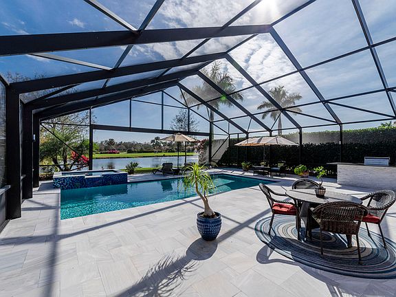 This ONE-OF-A-KIND customized home in the resort style gated community of Jupiter Country Club has been extensively remodeled with exquisite finishes and attention to detail. The one-story split floor plan offers 3 bedrooms, 2.5 baths PLUS and office/den & a 2 car garage. The previously closed-in kitchen was reimagined with a new open-concept kitchen with 2 spacious dining areas and a show stopping center island. The prime waterfront location with southern exposure provides the most enjoyable outdoor oasis perfect for private relaxation or entertaining friends & family. Soak up the lakefront views & breathtaking sunsets from the expansive marble paved pool deck surrounded by privacy hedges & tropical landscaping. The outdoor oasis includes a lovely saltwater pool with a raised spa & waterfall, a fully-equipped summer kitchen, a motorized retractable awning, and a 2,000+ sq ft full screen-enclosure. Gorgeous large format porcelain tile flooring, crown molding flow throughout the interior of home. Let's talk about this kitchen! The huge center island showcases the beautiful marble countertops which also continue to the backsplash. A 6 burner Wolf gas cooktop, SubZero refrigerator and wine refrigerator will certainly please the chef of the household. The new cabinetry was extended into the breakfast nook offering storage maximization. The great room is the heart of the home and offers tranquil views of the pool & lake through the wall to wall impact glass sliders. This home is luxuriously appointed with stylish light fixtures & window treatments. It provides all the essentials of easy Florida living with impact glass windows, CBS construction, natural gas, central vac and a whole house water softener and filtration system. The primary suite is truly a retreat, featuring two walk-in closets with built-ins and a spa-like primary bath with marble countertops, dual vanities, a makeup area, walk-in shower with frameless glass enclosure, and a large soaking tub. The office/den offers a flex space which could be an exercise room or convertible guest bedroom and is adjacent to the powder room. Jupiter Country Club is a luxury gated community conveniently located within close proximity of I-95 and the FL Turnpike, beaches, shopping, restaurants, parks & nature preserves. Club amenities offer a plethora of social opportunities and include a Greg Norman Signature golf course, 2 resort-style pools, the newly remodeled Sway restaurant, a state-of-the-art fitness center + yoga/mat pilates/barre classes, tennis, bocce ball, pickle ball & basketball. Members enjoy reciprocal privileges to Invited Clubs worldwide. The design elements of this crème de la crème home are breathtaking! You must see it for yourself!