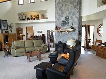 Listing agent: Mike Heraty, Call 970-264-7000 for information. Enjoy spectacular mountain views from this immaculately maintained lake front home's 12x32 deck. Large, open floor plan with gas log stove, very nice kitchen, Jenn-Air range, work island, breakfast bar and large walk-in pantry. Huge master suite with sitting area, jetted tub, separate tiled shower. Great views from all over this light and bright home. Mature professional landscaping provides privacy and has sprinkler system. Includes second driveway for access to a large open area for RV parking, 15x12 storage building, room to expand. Catch trophy trout from the private boat dock!