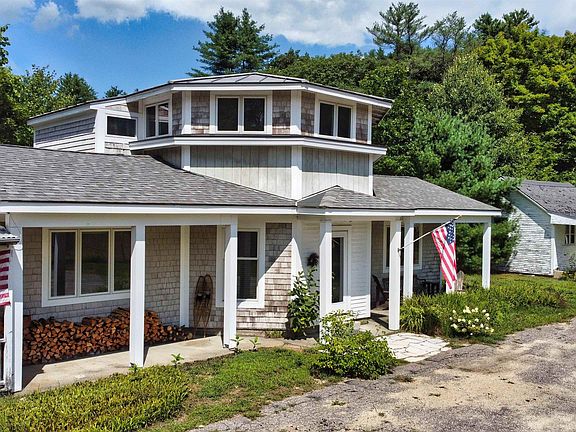 INVESTORS TAKE NOTICE! Village zoning with 3+ unit potential. You must see this 1940's conversion home in Andover's village! Just a short walk to Proctor Academy's 2,500 acre campus, this home was once the communities water tank, hence the unique octagonal architectural design. This property was further renovated with bamboo flooring, corian counter tops, butlers pantry and an upstairs primary suite boasting one-of-a-kind craftsmanship, walk in closet, and luxury bathroom with sunken tub. The bedroom on the main floor includes it's own wood stove and another en-suite bathroom. A 1.5 car garage is attached via covered walkway and the detached barn has been wired and plumbed for auxiliary living space (with town approval). Additionally, there is a guest house with plumbing and electricity.