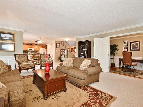 Look at the room sizes on this fantastic-impeccable home!!! Bump out on rear of home makes the family room & game room huge. Gorgeous kitchen with granite counter tops & center island opens to the large family room. Kitchen offers plenty cabinets & counter top space. Large pantry. Tile back splash. Recessed lighting. Wainscoting & crown moldings in numerous areas or the home. Wonderful gas log fireplace with gorgeous mantel in family room. First floor office. First floor laundry. Sliding doors from kitchen to deck is great for entertaining, meals & just relaxing. Great view. Wonderful cul-de-sac community with sidewalks. Huge master suite with sitting area, large master bath & large walk-in closet. Huge game room with walk-out door to a rear patio. Large yard. Large closets in each bedroom. Level entry. Large furnace room can also be exercise room. Full bath on lower level. Large storage room. This home is extremely well kept & ready for you to move in & just enjoy.