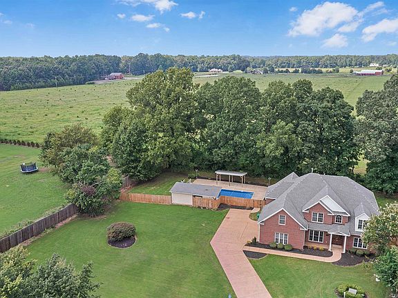 A Large Brick 5 Br 4.5 Bath Home with an In-ground Saltwater pool is for sale in desirable Northwest Jackson TN. This home sits on 2 lots with a farm view & has it all. A huge Primary Bedroom, an En-suite Bath with a Tile Rainfall Shower & Dual closets, A formal dining area, & a Large Great Room with soaring ceilings. The open Kitchen concept has double ovens, an Island with a smooth top cooktop & a hearth room with a gas log Fireplace. Gorgeous Maple Cabinets with built ins and a double size Refrigerator/Freezer grace the area. Beautiful Oak hardwood floors run throughout most of the main level with tile in the wet areas. Upstairs are 4 huge bedrooms & 3 more full baths.Home has new Upstairs HVAC, New Pool Liner, Cover on order, New Paint Throughout, 2 year Home Protection Plan Included! Believed to be in great condition but being offered As-Is. Priced on the Market! 3361 Heated Sf +/-.