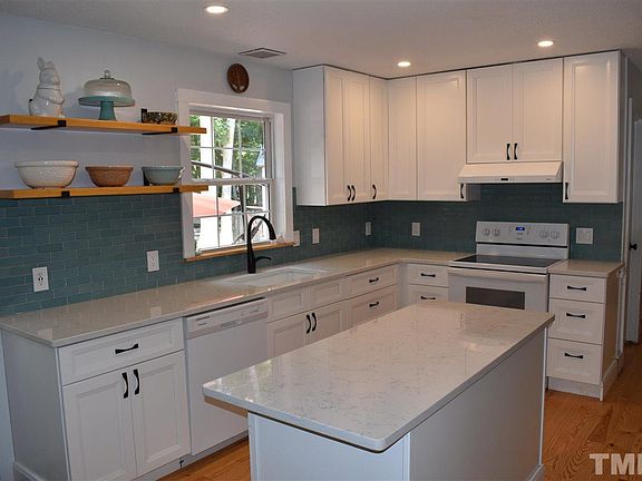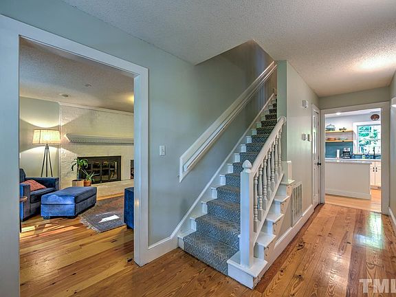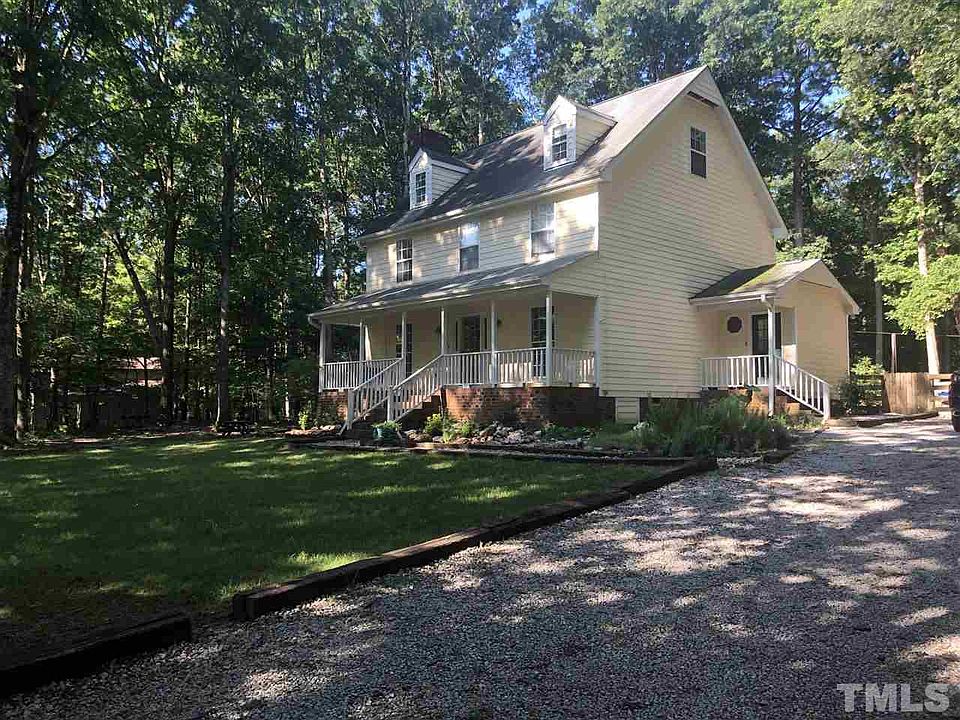 Great Youngsville home w/ rocking chair front porch! 3 bed 2.5 home w/beautiful flat/ 2 acre lot. (bonus can be 4th bed rm). Amazing updated kitchen w/ new custom white cabinets, cast iron sink, center island, quartz counter tops and tile backsplash. New upgraded pine flooring 1st and 2nd floor and new carpet in the bedrooms. Spacious family rm and living rm (living rm can be office). Updated interior paint. Fiber cement siding, landscaped yard, wired shop with chicken coop. County only taxes. no HOA.