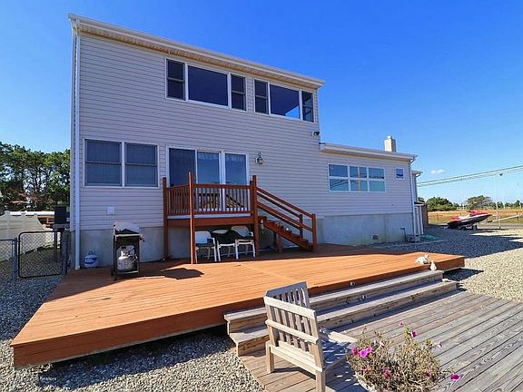 Panoramic Bay views from both floors, a beach across the street and 100 ft. on the water, renovated and elevated. This bright and spacious waterfront home offers plenty of room for a big family or guests with five bedrooms and 2 1/2 baths. Completely renovated and FEMA compliant. Beautifully situated on a 100X100 corner lot with new vinyl bulkhead. Bright open kitchen featuring a SS appliance package & granite. The backyard is perfect for entertaining or quiet days and nights just enjoying the beautiful bay views and sunsets. Spend the day at the beach right across the street then come home and enjoy the outdoor shower complete with a changing room. The perfect year round home or summer retreat.