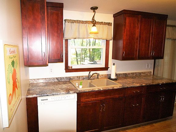 Adorable move in ready ranch has been tastefully updated with a cherry kitchen. Solid hardwood floors run throughout the living room, hallway and all three bedrooms! Sliding doors lead to a large deck overlooking a fenced in yard. The oversized garage has a rear door which makes for easy access to the backyard. This immaculate home is situated on a corner lot abutting a quiet side street. New roof in 2014! Come take a look, and imagine yourself living here!