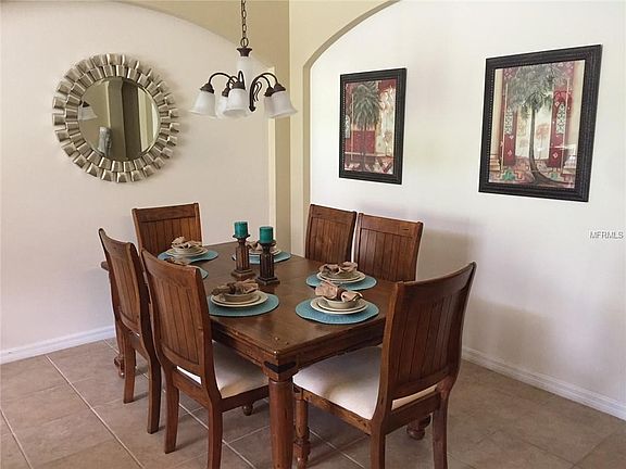 Beautiful residential or vacation home, checks every box! Gorgeous furniture, huge sunny pool deck, heated spa and pool with exterior half bath and shower. A lovely double door entrance invites you into a home that will welcome and delight. The gorgeous tiled living space is tastefully furnished and each bedroom is carpeted and furnished with style and comfort. T he kitchen is open to the family room and has a spacious breakfast area as well as a comfortable breakfast bar. The master suite is spacious and accommodates a king bed with ease, master bath is large and boasts double closets. This home is also equipped with a second bedroom with en suite and another 2 bedrooms that share a "Jack and Jill" bath. This house has been well taken care of and definitely has the five star appeal that vacationers are looking for and homeowners dream of. The gated community is just minutes from Disney, shopping, restaurants and many more attractions. The busy booking schedule will convey if current management is retained. This home is a must see!