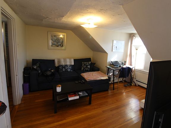 Sunny top floor apartment in 3-family house 3 blocks from Davis and 1 block from the bike path. The apartment has a living room, eat-in kitchen, bedroom, full bath and private deck. There is also one tandem parking space included and free washer-dryer in the basement. The back yard is shared. Pets negotiable. No broker fee.