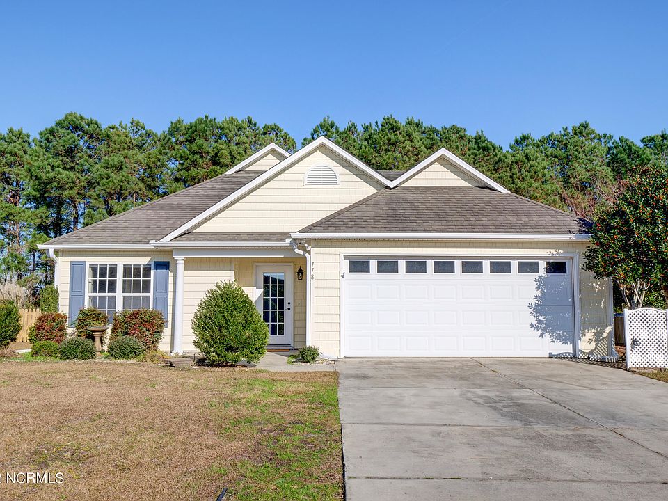Looking for that ''Wow'' factor for your new home...no need to go any further! This well-maintained 3 bedroom, 2 bath home has what you're looking for. As soon you enter, you'll be amazed at the large open floor plan. The beautiful LVP flooring is eyecatching throughout the main living area. The dining area has an abundance of light with it's many windows. Enjoy your evening tea around the corner fireplace in the living room. The kitchen features white cabinets, granite counter tops and a pantry. In the early morning, relax on the screened porch with your coffee. The owner's suite features bamboo flooring and a walk-in closet. The master bath features walk-in shower, double vanity and tile flooring. The other two bedrooms feature bamboo floors and his/her closets. Wait there's more.....Fully fenced in backyard, 2-car garage, landscaping, dusk-to-dawn spotlights. All this is conveniently located to shopping, restaurants, and area beaches. Topsail School District. Seller offering Buyer $5000 use as you choose.