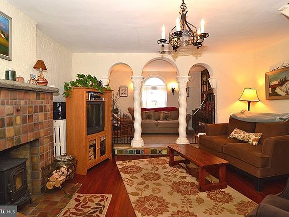 Welcome to this home with abundant character and charm. This is a rare find with Mediterranean style architecture not your run of the mill home. The front portico with turned columns is a great place to relax on a warm spring night. Your nice sized living room has a Moravian tiled fireplace with a wood stove insert and hardwood flooring. An additional sitting area with turned columns and built in shelves completes the living room. An archway leads into the formal dining room large enough for holiday get togethers. Your modern kitchen has a dishwasher, electric stove top, wall oven and ample cabinets and counter space. Three nice sized bedrooms with brand new carpeting and a Moroccan tiled bath are found on the second floor. To the rear of the kitchen is a mudroom with a door to your paver patio and small fenced yard. Full basement with two stair cases. One year old central air, newer heater, hardwood under carpet, some unique windows and some replacement windows, lovely original lights and cedar closets are just some of the wonderful features. You also have off street parking to the rear of your home and a one car detached garage located on an end unit on Diamond Street which is right to the side of this property. The garage has an additional tax of $157.00 per year. If you're looking for a lovely unique home this is it. Welcome Home!