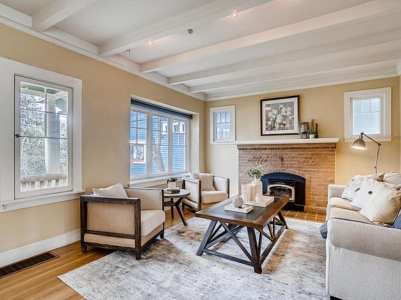 Beautiful 1911 Craftsman home in the heart of Greenwood with a 94 walk score! 2100 SF over 3 floors, 3 bedrooms including an awesome master suite, 3 bathrooms, dining area and a light filled living room with a fireplace & beamed ceilings. The cozy basement features a media/family room & lots of storage. Located on a quiet street, you'll find a charming porch up front and a serene deck and back yard garden off the alley. New heat pump and AC! Excellent bike & transit access and great schools!