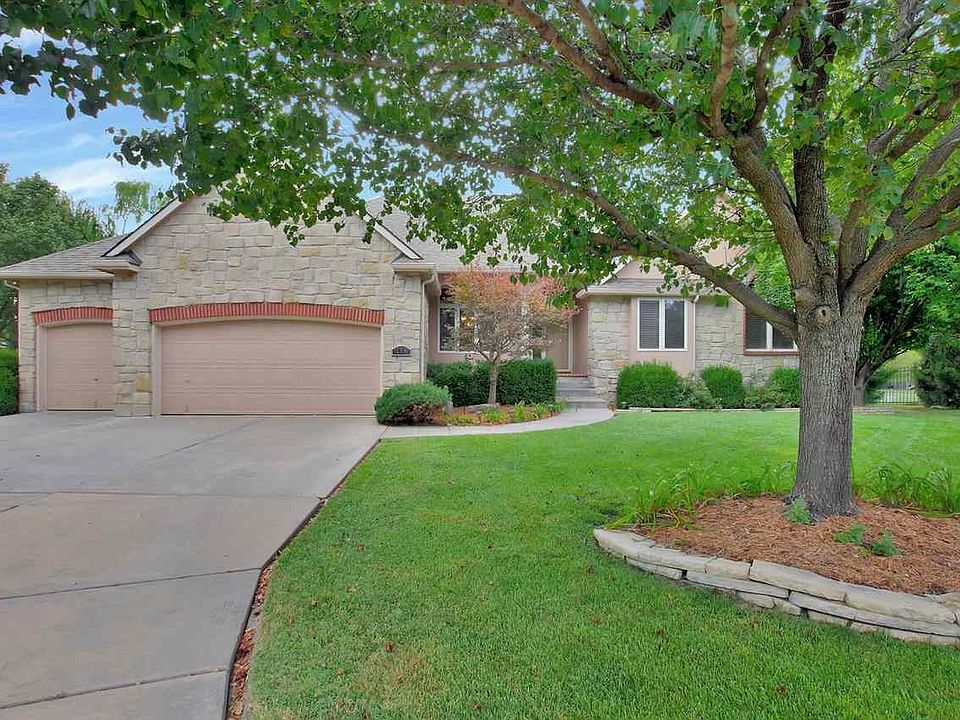 Welcome home! Clean and move-in ready home located in Belle Terre Addition. This home has some many extras for the price - hardwood flooring, a walk out basement, a wet bar, newer carpet, 10' ceilings, granite countertops in the kitchen, hickory cabinetry in kitchen/hearth, a sprinkler system with an irrigation well, and a backyard that backs to the common area. The main floor offers a formal living room, formal dining room, a hearth area, and a breakfast nook off the fully applianced kitchen. There is a great two-way fireplace that separates the grand space. There is also a large master suite with a tray ceiling, walk-in closet, deep whirlpool tub, and a separate shower. In addition, the main floor offers two spare bedrooms, a second full bathroom, and a laundry room. Head to the basement to enjoy the custom-built wet bar, two additional bedrooms with great closet space, a large rec room space, game area, third full bathroom, and extra storage located in the mechanical area. Second fireplace is also located in the basement and there is also an offset wall for entertainment area to fit plush. This home sits on a very private cul-de-sac that backs to many mature trees and the common area. New composition roof! Don't forget - Sedgwick County taxes/Andover School system and no special taxes remain except the $7.80 landfill fee per year. With over 3700 finished square feet, this home has so much to offer for the price. Don't miss out!