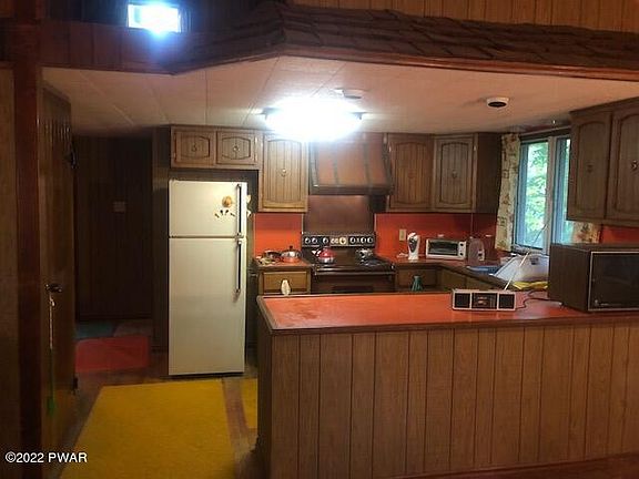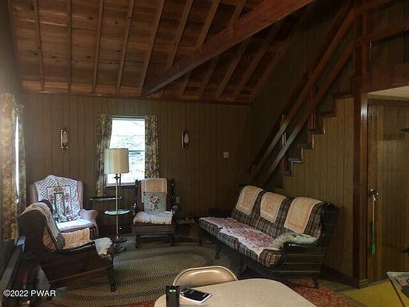 Lake Wallenpaupack Lake Rights Chalet in the desirable community of Pennwood on Lake Wallenpaupack. This mountain chalet offers wood flooring, open floor plan, 3 Bedrooms, one Full Bath, Full Basement (Unfinished) with one car garage built in. Walk or take a golf cart to the beach area on Lake Wallenpaupack. This chalet is being sold ''As Is''. no str., Beds Description: 1 BED 2nd, Beds Description: 2+BedL, Beds Description: 1 BED 2nd, Baths: 1 Bath Level 1