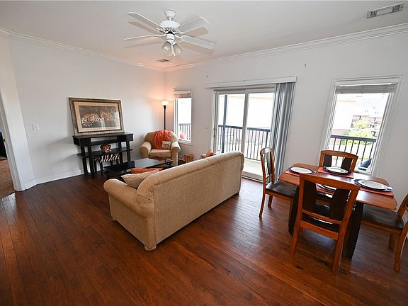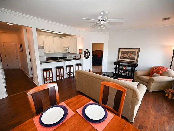 Prime location!! Small complex nestled in the heart of Auburn University's campus across from Momma Goldberg's on the corner of West Magnolia & North Donahue behind the cute orange cottage on the corner! Covered parking & zero steps to entry with elevator. 9' ceilings throughout & hardwood floors in the main living areas. Kitchen is open to the living room & a breakfast area. Off the living room is a spacious covered patio! Kitchen with granite countertops & undermount sink, as well as sit down bar for more space to entertain. Oversized bedrooms with large walk in closets and en-suite bathrooms. Primary bath features an extended vanity, step in shower & jetted tub with tile surround. Second bedroom also is very spacious & has an en-suite bath with a tub/shower combo. COA fees include cable, water, trash & grounds. Furnishings negotiable.