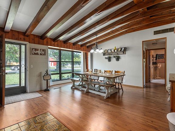 Beautiful home on a picturesque street in Cheney! Spacious rooms, beamed ceilings, zero entry and a large shop. This 3 bedroom, 2 full bathroom home has many updates and lots of character. As you enter the home, you are welcomed into the formal dining room with plenty of space for a china cabinet or buffet and large windows allowing natural light. There was a wood burning stove previously on the tiled flooring. The chimney is sealed and in tact for you to add one back into the space. The kitchen features large cabinets for storage, gorgeous granite counter tops and is open to the living room. The living room includes additional storage closets. The primary bedroom is located on the back of the home for privacy and is right next to a nicely updated full bathroom with space for your stackable washer and dryer. The additional bedrooms are located near the dining room and the second full bathroom with an updated vanity and tile flooring. The huge family room has additional storage cabinets, separate mini split system to keep you comfortable and plenty of room for seating or entertaining. The patio is partially covered and located in the privacy fenced back yard. The 4 car garage makes a wonderful shop with it's own HVAC system and alley access. There is a storage shed located near the alley as well. This home is one of a kind and located on a lovely quiet street. Enjoy small town living in this vibrant community!