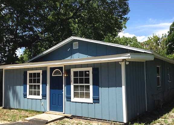 Charming cottage tastefully renovated top to bottom. Replaced rafters, roof, and newly painted siding. Everything is new in the bathroom: tile, fixtures tub and sink w/cabinet. New kitchen cabinets installed, new countertops, sink and fixtures. Cement flooring stained and polished throughout the home and is very attractive. Home is cinder block, which keeps the home cool in the summer and warm in the winter; should keep utilities at a minimum also. A large sunroom is located at the entrance & large open living, dining, kitchen area. All interior walls, trim and ceilings newly painted, all new windows installed. There are new electrical outlets, new electrical wiring and new plumbing. New lighting fixtures and fans. Existing ADT security can be reconnected. A large backyard, quiet neighborhood with low traffic flow.