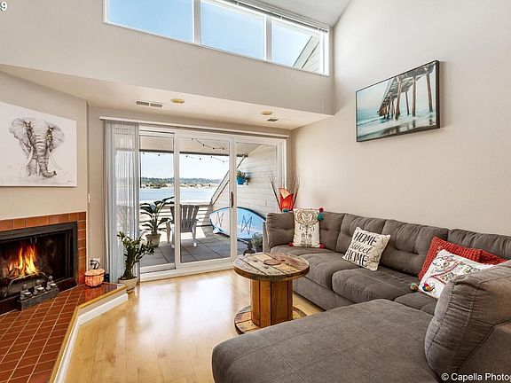 Uninterrupted views of the Columbia River. Outdoor lovers dream! Grab your paddle board and enjoy! 10 minutes to downtown. Paved path for walking around island. Restaurants and shops minutes away on island. Filled w/ natural light. 140 sq ft patio. Wood fireplace. A/C. Maple hardwood floors on main. Deed parking space. Lofted bedroom w/ full bath.