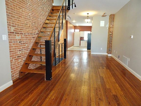 Spectacularly designed Patterson Park rowhome with 2 bedrooms/1.5 baths and over 1600 square feet of living space. Beautiful hardwoods throughout, spacious living room with dining area, exposed brick, upgraded kitchen with granite counters and stainless steel appliances, main level half bath. Two spacious bedrooms upstairs with neutral colors, large windows for natural lighting, and ceiling fans. Updated second floor bathroom with large stand-up tile shower and new vanity. Finished basement for extra rec space. Washer and dryer included in unit. Pets welcome with owner approval and deposit.