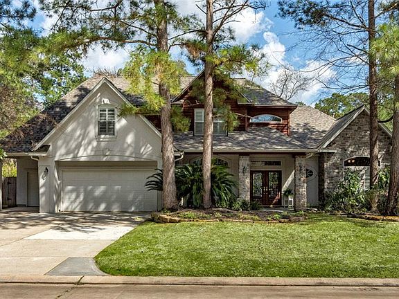 HIGH/DRY-NO flooding here!Located on a RARE PRIVATE HOMESITE wth only forested preserve beyond the backyard gate-No road behind it!CUSTOM home w/every room you could want+2 bedrooms+1.5 baths down! Floors:Wood,tile,NEW CARPET! CUSTOM Outdoor Kitchen under lanai+TV! w/flagstone patio,walkway.Pool+spa w/wrought iron fencing around it.Don't miss the 1/2 bath in laundry room-perfect for a pool bath! NEW ROOF-2016.Bush Elem,Mitchell,Woodlands H.S. Easy commute to Town Center, Hughes Landing, I-45.