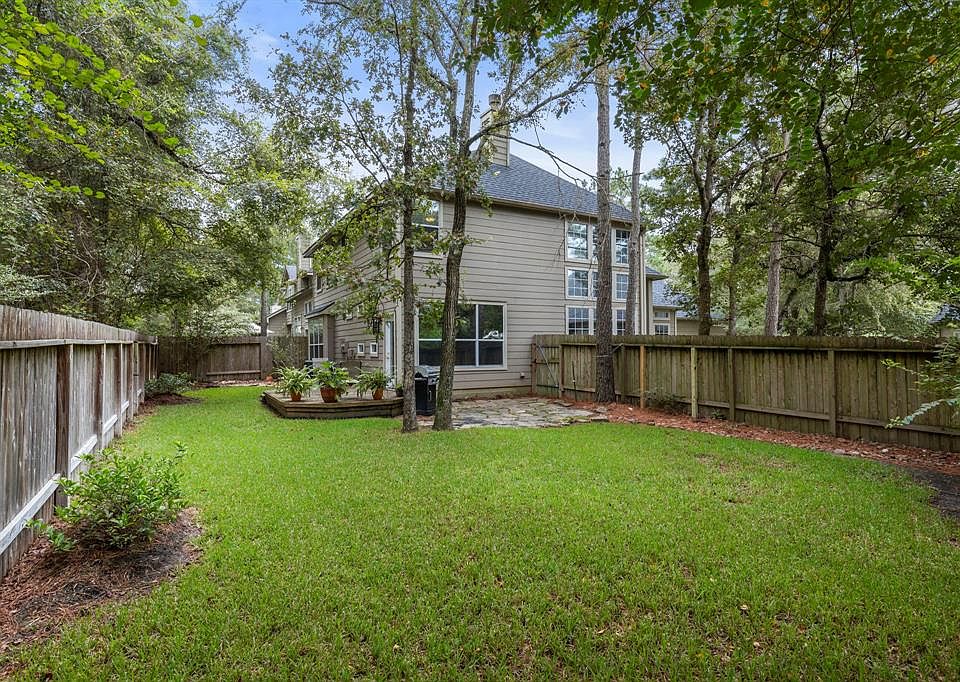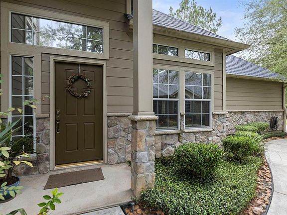 Townhome with PRIMARY BEDROOM DOWN and two additional bedrooms upon large lot in Valley Oaks. Generous backyard greenspace with large patio deck that back to a greenbelt and no neighbors. High ceilings in the family room with wood floors and gas fireplace, kitchen with SS appliances, gas cooktop, granite counters and breakfast bar, dedicated study with French doors and view of the from yard and abundant windows throughout the home. HOA provides front yard lawn maintenance and cost for watering, exterior maintenance, exterior insurance and common area maintenance. NEW ROOF installed 2020 by HOA . Easy access to I-45 and FM 1488, Zoned to Powell Elementary, Mitchel Intermediate, McCullough Jr. High & The Woodlands High School.