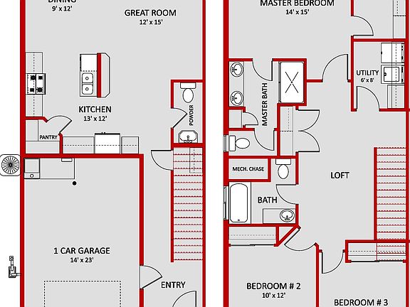 - Bath-Master, Split Bedroom, Great Room, Double Vanity, Walk-In Closet(s), Loft, Pantry, Kitchen Island, Quartz Counters, Number of Baths Upper Level: 2