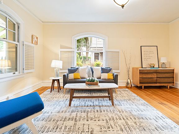 Welcome to the Alphabet Districts premier one-story walk-up surrounded by Washington Park and the shopping and dining of NW 23rd and NW 21st Avenues. Built in 1909 and designed by architect Emil Schacht, this historic building retains much of its original charm. Inside, you’ll find beautifully preserved oak hardwood floors, built-in cabinetry, and extensive millwork. The large living room features high ceilings, arched windows with gardener-maintained planter boxes, and picture rail moldings. Original pocket doors open to an intimate, coffered ceiling dining room. A butler's pantry provides the perfect nook for bar enthusiasts or those seeking a convenient work-from-home space. For those who prefer to cook at home, the kitchen is fully equipped with a gas range, granite countertops, and ample cabinetry. Whether you eat in or explore the many nearby restaurants, it's a matter of choice—not necessity. Down the gallery hall, the spacious bedroom includes a large walk-in closet with its own window. The spa-like bath is rich in tile and full of charm. Enjoy the convenience of in-unit laundry, plus a dedicated basement storage unit for bikes and other belongings. To improve energy efficiency, the original double-hung windows have been updated with dual-pane glass. The Georgian-style building recently received a new roof and a full exterior repaint. Come experience everything this incredible neighborhood has to offer—with a 98 Walk Score, the best of Portland is just outside your door.
