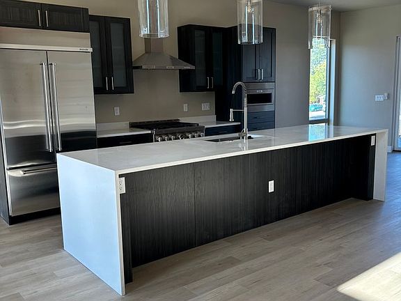 This amazing home is 2309 sq feet and flaunts high-end custom finishes throughout. From the 10-foot ceilings to the 8-foot doors, the spacious layout creates an inviting atmosphere. Prepare gourmet meals in the chef-inspired kitchen, equipped with stainless steel KitchenAid appliances, including a 42-inch fridge and a 36-inch gas stove. A large kitchen island with quartz countertops and a waterfall edge invites you to gather and indulge in the art of food and conversation. Other features, including the soft-close cabinets, under cabinet lighting, and coffee bar make this kitchen a dream for any culinary enthusiast. The primary bedroom features a lavish 5-piece en-suite bathroom that has a freestanding soaking tub. This room is complemented with walk-in closets that offer ample storage. Soak up the natural light from the second and third-floor balconies, accessible through the impressive 12-foot sliding doors. This seamless integration of indoor and outdoor living spaces creates an enchanting ambiance that is truly unforgettable.