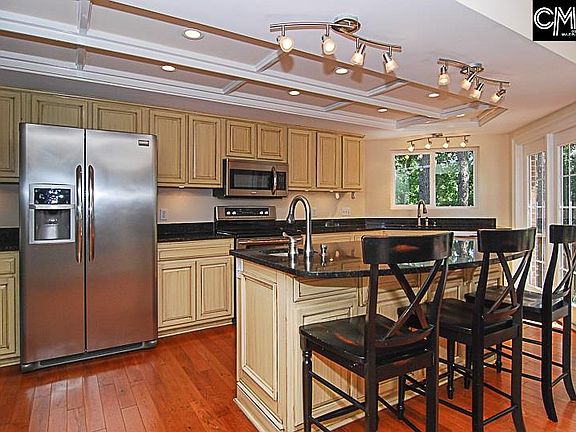 - Kitchen: Bar, Counter Tops-Granite, Pantry, Floors-Hardwood, Recessed Lights, Cabinets-Glazed, Prep Sink