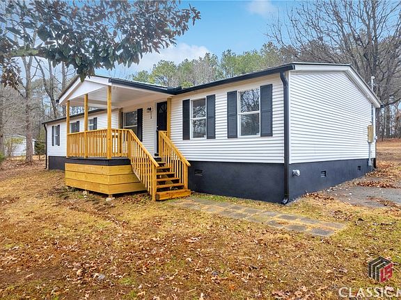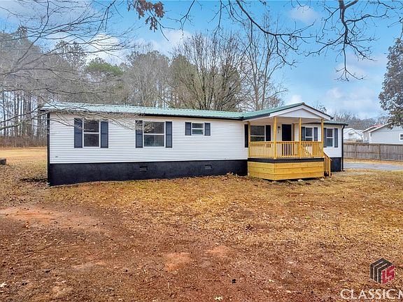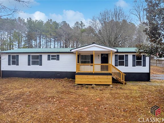 Welcome to this beautifully remodeled 4-bedroom, 2-bathroom mobile home is situated on a spacious 0.86-acre lot! This 1736 sq ft home offers a perfect blend of comfort and style. The living room features a cozy fireplace, while the common areas showcase durable and modern LVP flooring, complementing the carpeted bedrooms. The master suite includes a walk-in closet and large bathroom. Take comfort in knowing there is a brand new water heater and HVAC system in place! Step outside to enjoy the newly built front porch or entertain guests on the back deck, ideal for cookouts and gatherings. Conveniently located less than 10 minutes from downtown Commerce, you’ll have easy access to fantastic restaurants, shopping, and activities. This home is ready for you to move in and make it your own!