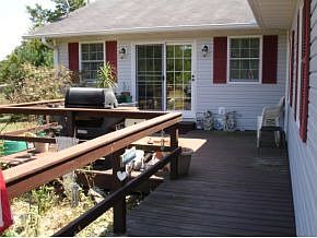 Solid Ranch Style 3/2 Lake Home...with a Twist! This compact home is angled on the lot for maximum privacy. This was the builder's personal home, you'll see it in the oversize finished garage, large island kitchen and quality details. Light hardwood kitchen cabinets blend with wood-lined vaulted living room ceiling. Ceramic tile floors, upgraded cream plush carpet. Price includes "turn key" package including furnishings, appliances & accessories! Gorgeous yard, oversize finished garage/shop. Boat rentals & slip leases at marina nearby.